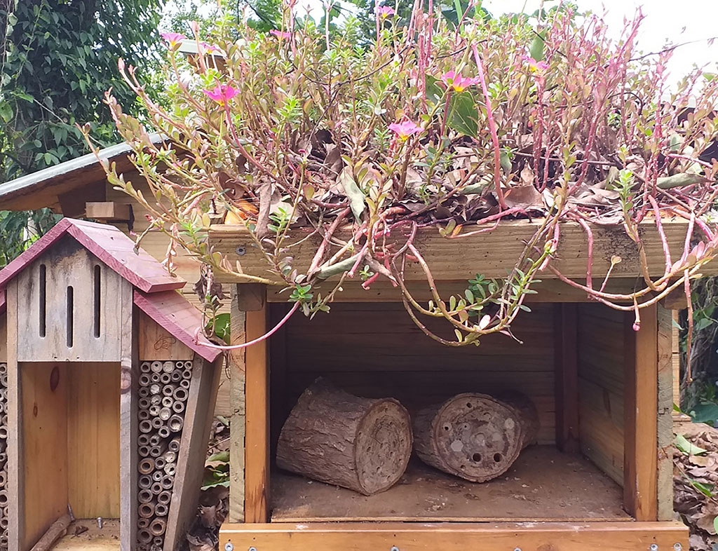 獨居蜂生態觀察與友善農作:在菜園、果園等幾個不同地方設置、設計多種蜂旅館